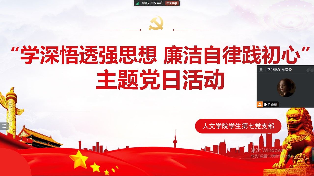 为庆祝中国共产党成立103周年,深入学习《习近平关于全面加强党的纪律建设论述摘编》(以下简称《摘编》),推进党纪学习教育走深走实,增强执行党规党纪的政治自觉、思想自觉和行动自觉,2024年7月4日晚,公司员工第七党支部在线上开展了以“学深悟透强思想,廉洁自律践初心”为主题的党日活动。会议由支部宣传委员许雨桐主持。