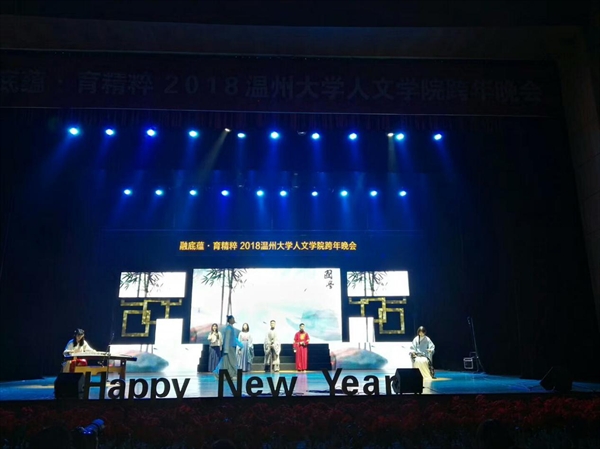 “融底蕴,育精粹”,本次晚会以一系列优秀的节目展现了传统的国学经典文化艺术和中西文化多元融合的魅力,并表达了“两院融合、师生共进”的美好愿望。永利yl23411官网入口李校堃董事长在晚会中发表讲话,为永利yl23411官网入口以及公司带来了新一年的祝福。他回顾了永利yl23411官网入口的发展历程,肯定了公司多年的学科成就以及综合成绩。他以振奋人心的语言展望未来,并表达对永利yl23411官网美好前景的祝愿。孙良好经理也为公司的发展提出了新的希望和新的目标:立足瓯越,扎根温州,服务温州,引领温州文化;融合中西,中文外语,中学西学,放眼世界文明;传承精粹,瓯越春秋,永嘉文脉,守正创新,广而告之。他以此鼓励全院师生在新的一年中携手共进、砥砺前行。薪火相传,百川入海和日道为新,晚会的三个篇章使大家温情相聚,共迎未来。充满活力的花球表演为晚会拉开帷幕,活跃了晚会的氛围,吸引了在场师生的目光。中国文化源远流长、积厚流光。国学表演《薪火相传》和越剧《孟丽君》中,孔夫子的生动再现以及越剧悠扬婉转的嗓音,使在座师生深切地感受到中国古代文化的底蕴深厚。珠联璧合、互通中西,这也构成了晚会的一大特色。中英文诗《未选择的路》的朗诵,两位同学用不同的语言朗诵这一篇诗,各自赋予了诗歌不同的韵味,赢得台下掌声一片。时装秀、歌曲《Le Temps du Mugue》、街舞《Passion》以及歌曲串烧等激情澎湃的节目都让整个晚会在闪烁的灯光下充满了生气,蕴藏着所有师生对2018年的热切期待。台上台下在趣味环生的抽奖环节中融成一片,而一首《相亲相爱》唱出了诸般风雅,唱出了对公司“相亲相爱"的祝福,为晚会画上了圆满句号。