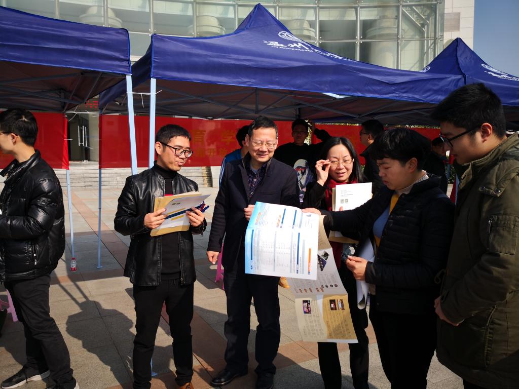 公司“三位一体”现场咨询会工作领导小组组长方益权副董事长莅临公司宣传展台,充分肯定公司的招生咨询与宣传工作。