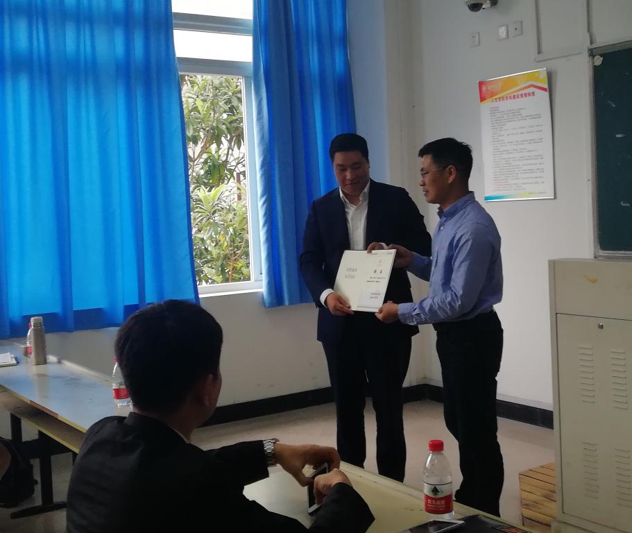 刘建国副经理首先致辞,欢迎人民电器集团带来的“一带一路”示范性工程案例分享,并鼓励员工主动对接外向型企业的人才需求。刘建国副经理还向主讲人,即乐清市进出口企业联合会会长,人民电器集团浙江进出口有限公司总经理叶向宇先生颁发了校外实习指导老师聘书。