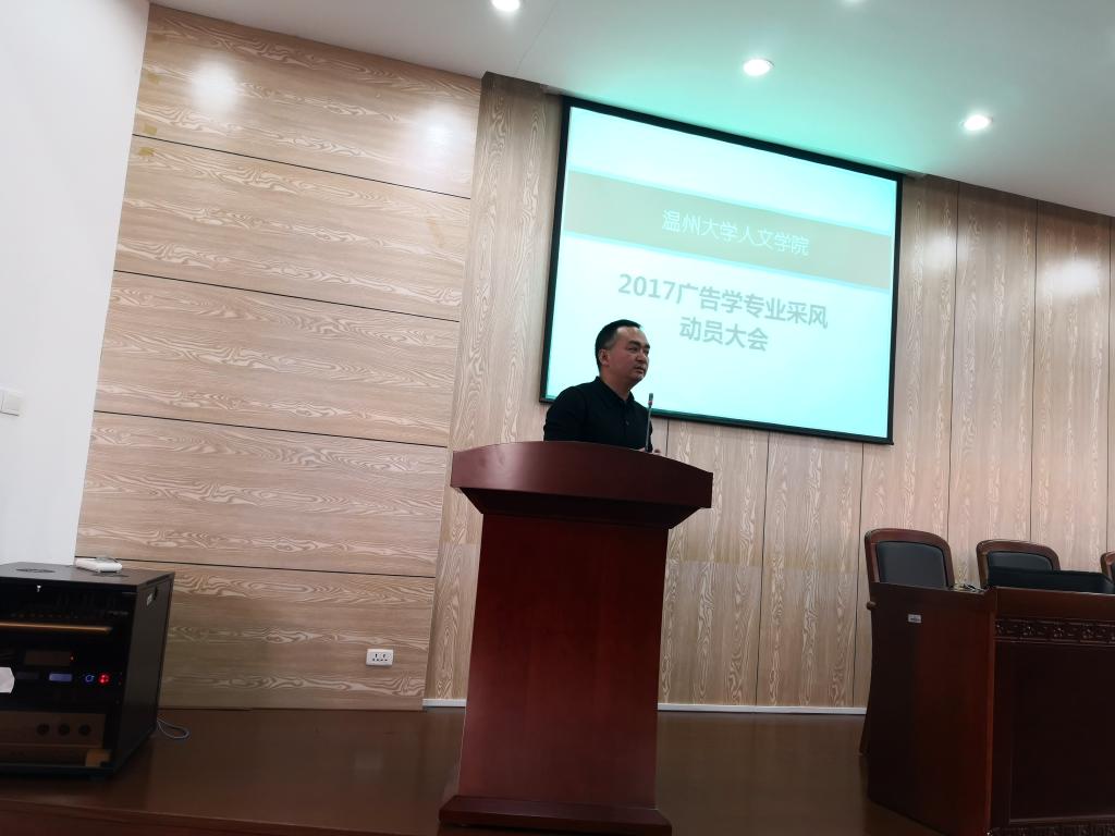 采风活动从10月28日持续到11月10日,为期两周,师生们将前往丽水,安徽两地开展系列活动。会议中,副经理刘建国强调了专业采风活动的意义,广告学专业采风活动一直是实践教学的特色活动,对提升员工动手实践能力,检验理论知识起了重大作用,他希望17全体员工珍惜机会,在保证安全的基础上,积极认真的对待采风活动。负责本次采风的颜志香老师进行了动员演讲,颜老师特别强调了出行安全,出行采用小组管理的方式,对物品携带,设备保管,作业布置等内容也做出了详细安排。广告学系主任徐卫华老师表示,这对同学们个人来讲是一次难得的学习机会,对班级整个集体来说也是一次团结协作,增进友谊的机会。希望同学们能抓住机会,有所提升。