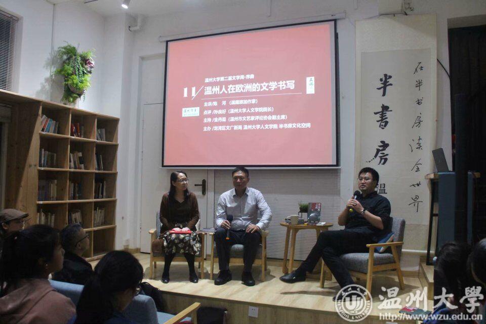 2018年11月11日晚7点,公司第二届文学周温州作者系列之陈河专题分享会——《温州人在欧洲的文学书写》在温州半书房文化空间圆满举行。本次活动邀请温州籍旅加作家陈河为主讲人,公司经理孙良好为点评人,文艺评论家协会副主席金丹霞为主持人,现场氛围活跃,众多师生到场学习并参与讨论。