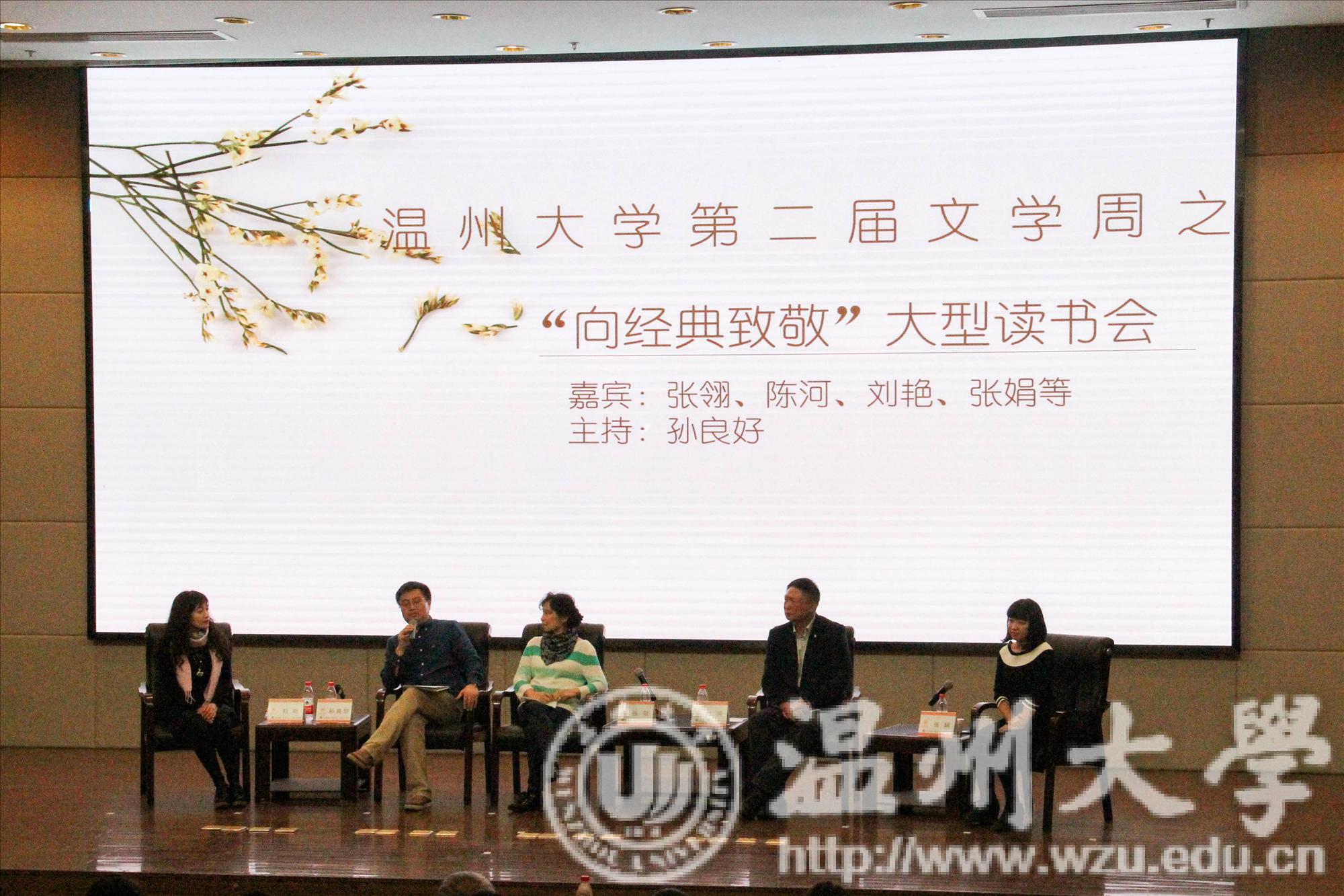活动开始后,孙经理向我们隆重介绍了五位嘉宾,并提出在这个众声喧哗、浮光掠影的社会里,我们要沉下心来阅读经典。之后,各位老师以“读经典的必要性”为主题展开了讨论。孙经理提出:“阅读经典就是‘无用而自有为‘,年少时应该博览群书、披沙拣金。”张翎通过她年轻时的经历告诉我们:“经典是年轻时营养的钙片”,形象地解释了人与经典的关系并告诉我们要学会与经典对话。随后,刘艳告诉我们文化素养的养成应该从阅读经典开始,她以沈从文的《边城》和萧红的《呼兰河传》为例,教导我们读经典不能教科书式的阅读,要回到原作、现场以及作者的人生经历来感受一个作家写作的变化。紧接着,陈河语重心长地告诉我们读经典要从年轻开始,投入全部精力去读自己喜欢的经典。张娟着重讲述生命哲学,通过生命哲学启示我们每一个个体去发现经典,面对自己、享受孤独之美。