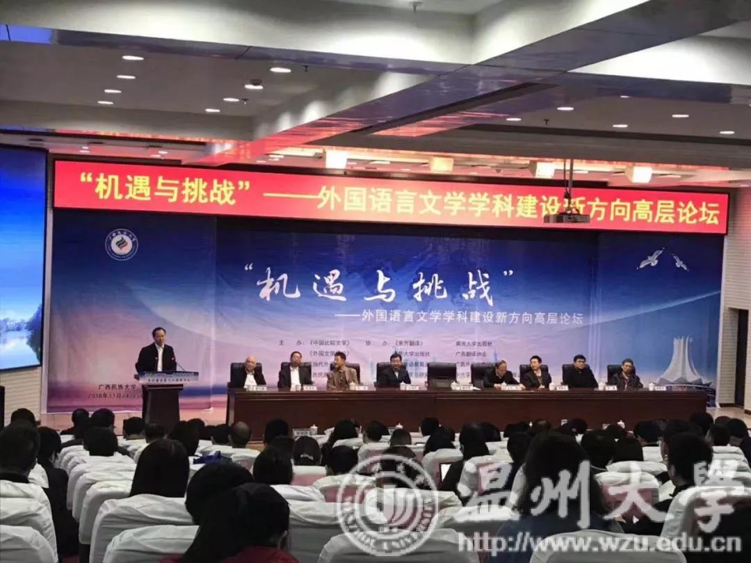 “机遇与挑战”——外国语言文学团队建设新方向高层论坛于2018年11月24—25日在广西民族大学顺利召开。公司外语系英语(师范)专业负责人李新德教授和外语系主任杨开泛老师参加论坛,并分别在论坛上作了题为“叶祥添‘金山系列小说’中的创伤书写”和“区域研究专业的培养理念及其对于英语专业的启发”的发言。