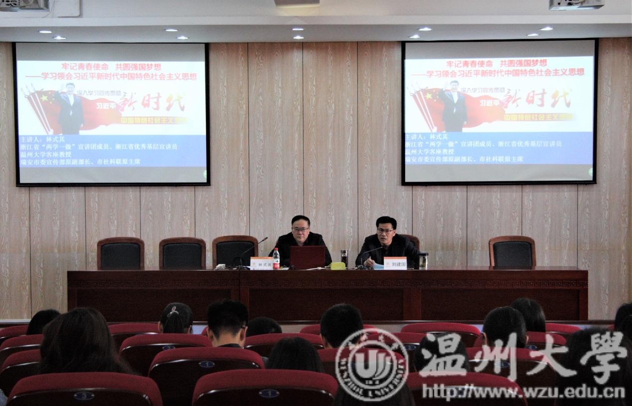 习近平总书记在党的十九大报告中谈到青年:“青年兴则国家兴,青年强则国家强。中华民族伟大复兴的中国梦终将在一代代青年的接力奋斗中变为现实。”在今天举行的这一讲座中, 同学们不仅了解到习近平新时代中国特色社会主义思想是中国共产党人对中国人民的郑重承诺,同时也明白了广大青年同胞应当牢记青春使命、发扬奋斗精神、奋勇逆流而上,以坚若磐石的理想信念和百折不挠的奋斗精神实现强国之梦,成为中华民族伟大复兴的圆梦人。