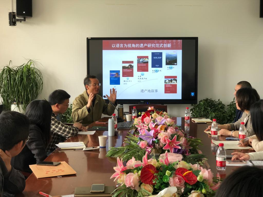 5月9日上午9时,外国语公司有幸邀请到世界银行遗产项目咨询专家、浙大博导吴宗杰教授莅临北校1幢213学术交流中心作了一场题为“乡村文化记忆与遗产地书写”的罗山讲堂学术讲座。讲座在席留生副经理热情洋溢的欢迎辞中拉开帷幕,随后吴教授简明扼要地讲述了自己的学术历程,其研究肇始于应用语言学,进则拓展至中国语境下的批判话语学,并以语言为主线,跨越众多的人文社会科学学科,铸就自己独特的研究风貌,进而在文化话语、文化记忆与遗产、历史民族志、跨文化传播、教育话语等领域的国内外顶尖期刊发表了一系列重要著述。接着吴教授以“为什么用文化记忆而非文化遗产去谈论乡村文化保护?”、“中国本土的遗产观是什么?”等问题正式导入讲座要义,他认为文化记忆具有“流动性、政治性、资源性、在地性”等特点,进而系统梳理了文化记忆与文化遗产的个中区别,并指出遗产地书写是一种文化话语视角下的遗产意义建构。再则,吴教授通过展示自己主持完成的“东坞山村”、“山东孔孟遗产地”、“衢州水亭门”、“西湖释山”、“邹鲁古道”等遗产项目,着重释说了人文社会科学研究主动对接当下社会的重要意义,并以温州府志书写为例,引出了以语言为视角的遗产研究之体例、范式创新。最后,与会者在热烈的答询互动中得到了极大的思维洗练和涤荡。