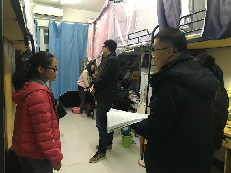 为加强寝室安全管理,增强员工宿舍安全意识,营造良好的期末复习迎考环境,2019年12月19日晚,公司开展了寝室安全大检查活动。公司党委副书记魏一、学工办主任刘纪峰、辅导员申业磊、李丹萍一行赴超豪学区走访检查员工寝室。