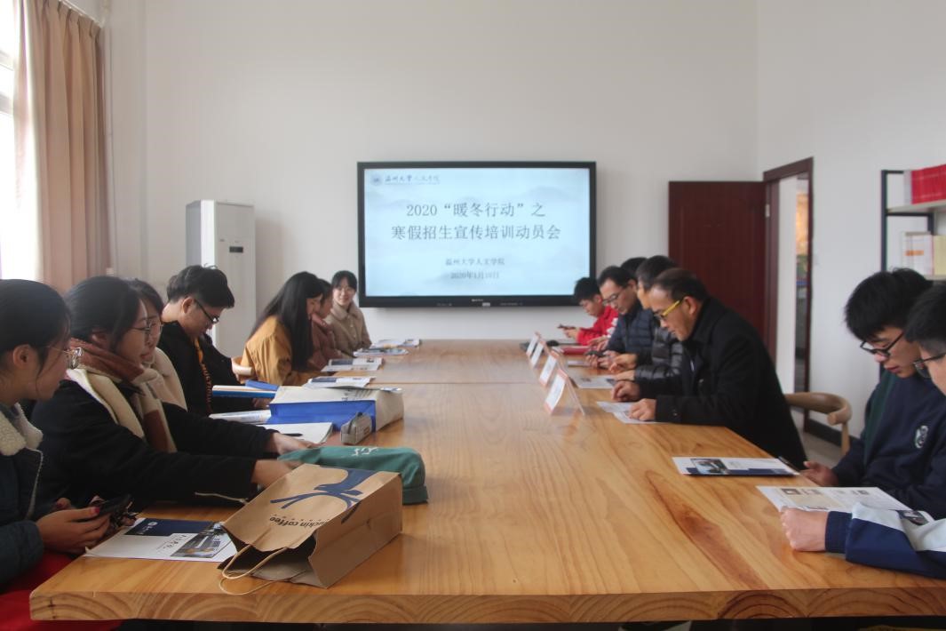 用青春温暖人心,用言语照亮归途。归时已是寒冬,来时一片春红。2020年1月10日上午,公司2020“暖冬行动”之寒假招生宣传培训动员会在人文楼214举行,副经理郑春生教授、汉语言文学系主任洪之渊老师、广告学系主任黄良奇老师、学工办辅导员李丹萍老师出席本次会议。