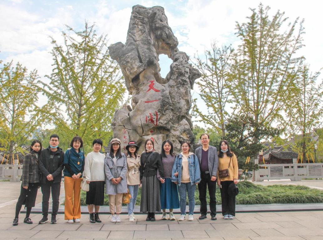 本次调研的第一站是天一阁。调研小组了解到,天一阁藏书楼是中国现存历史最久的私家藏书楼,也是世界上现存最早的三个私家藏书楼之一。范钦收藏书籍以手抄本为主,曾藏书1.3万卷,在民国时期损失近一半。天一阁现藏古籍达30余万卷,藏书类型丰富,包括各类宗谱,珍贵书画等,以明代科举录、地方志最为珍贵。这些藏书对于研究语言以及传承中华传统文化起着极大的作用。调研小组还通过对天一阁藏书楼的参观,学习到了古代的古籍分类以及一些保存书籍的方法,比如书籍按照年代分类、用香樟树作书柜和用云香草驱虫保护书籍等。