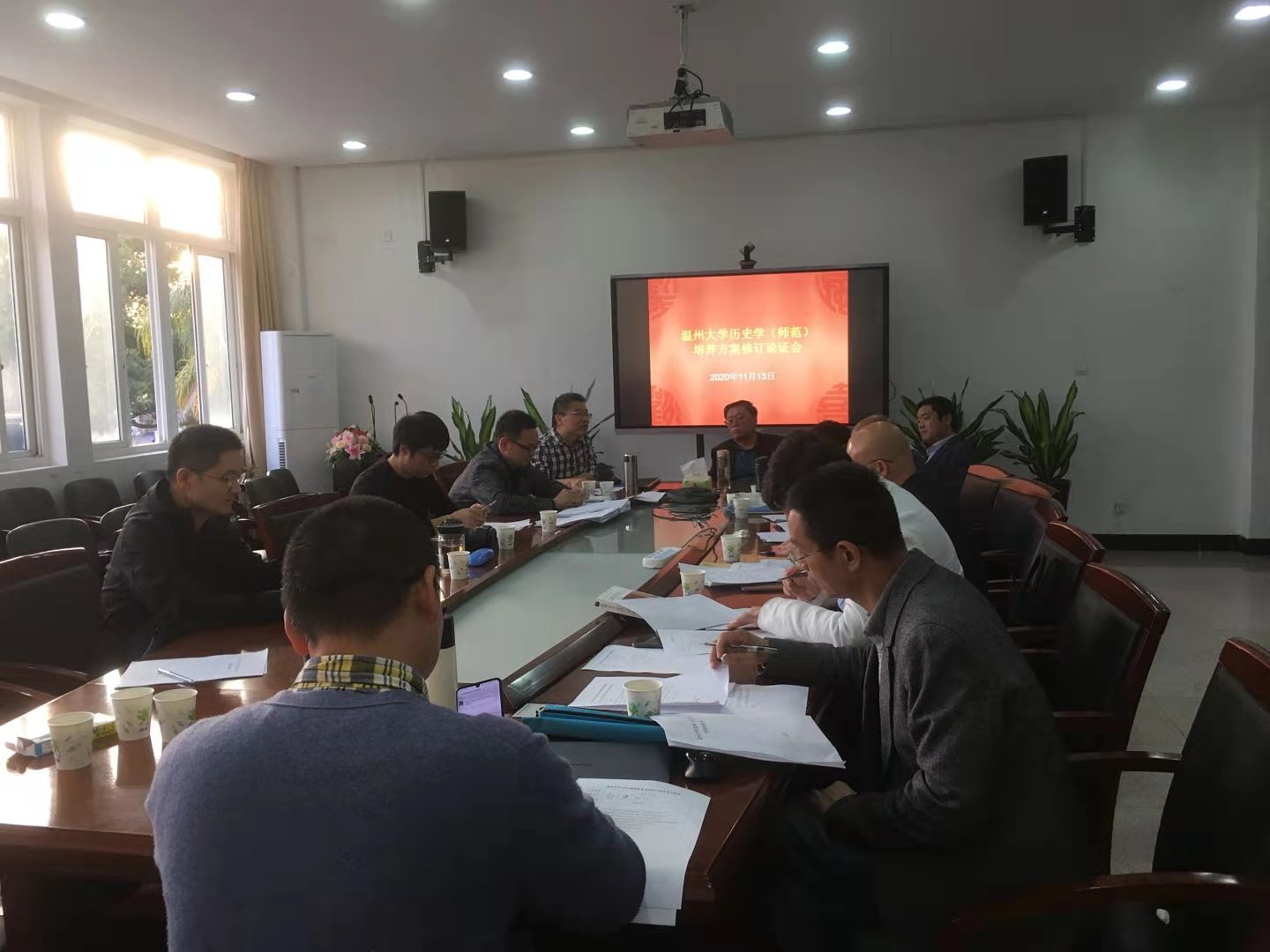 2020年11月13日下午,历史系在永利yl23411官网213会议室召开历史学(师范)专业培养方案修订论证会。来自温州中学一线的历史教学名师蔡永、方军、黄静、王少莲、夏陈伟、项洪文、肖云豹、徐乃赛、赵庆东、郑小侠和历史专业骨干教师参加了论证会。会议由永利yl23411官网副经理、历史专业负责人郑春生教授主持。