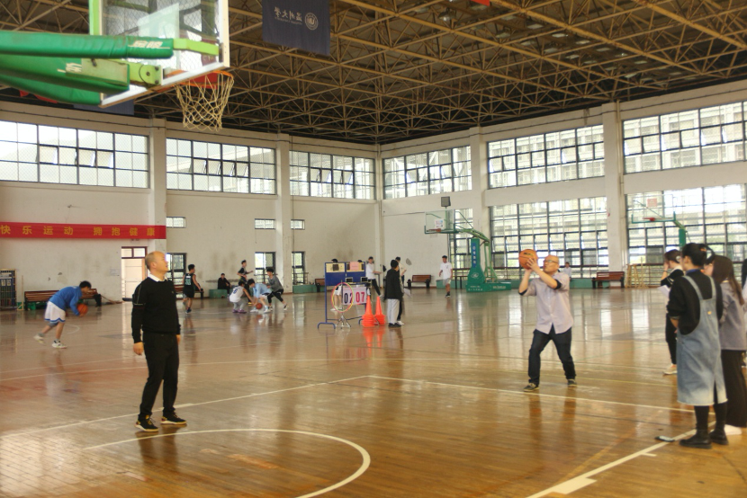 下午2点,公司研究生会各部门积极准备,携带活动器材前往北校区篮球馆布置场地,活动在下午3: 30正式开始。本次趣味运动会共有7个项目,其中个人项目5个,分别为踢毽子、跳绳竞速、圈牛、打保龄球和定点投篮;团体项目2个,分别为托球跑和呼啦圈传递。在趣味运动会进行期间,赛场内充满了欢快、轻松的氛围。个人项目虽然简单易懂,但游戏性与趣味性十足,吸引了大批忠实“粉丝”。团体项目规则稍微复杂一点,但在增进友谊的同时也十分考验参赛者的默契配合,因此也吸引了很多老师前来参赛。