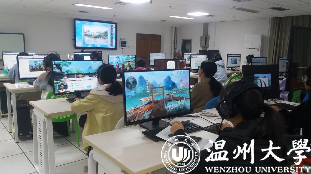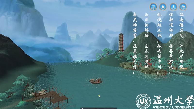 今年11月,《山水诗之意境体验虚拟仿真实验教学项目》被正式认定为国家级虚拟仿真实验教学一流课程,是全国首批文学类的虚拟仿真实验教学项目,也是浙江省唯一的文学类虚拟仿真实验教学课程。2017年9月,该项目正式在温大永利yl23411官网上线试课,创新教学模式,深受员工欢迎。温州作为山水诗发源地,研发团队将此作为教学项目主题,员工可选取山水诗鼻祖谢灵运、山水诗代表诗人孟浩然、文天祥等文人作为虚拟仿真实验中的特定角色,以江心屿作为特色地标。在技术渲染的手段下,员工可以在充满意境的虚拟仿真环境中沉浸式地学习古典诗词,真正达到在自主学习过程中掌握系统化知识的目的。