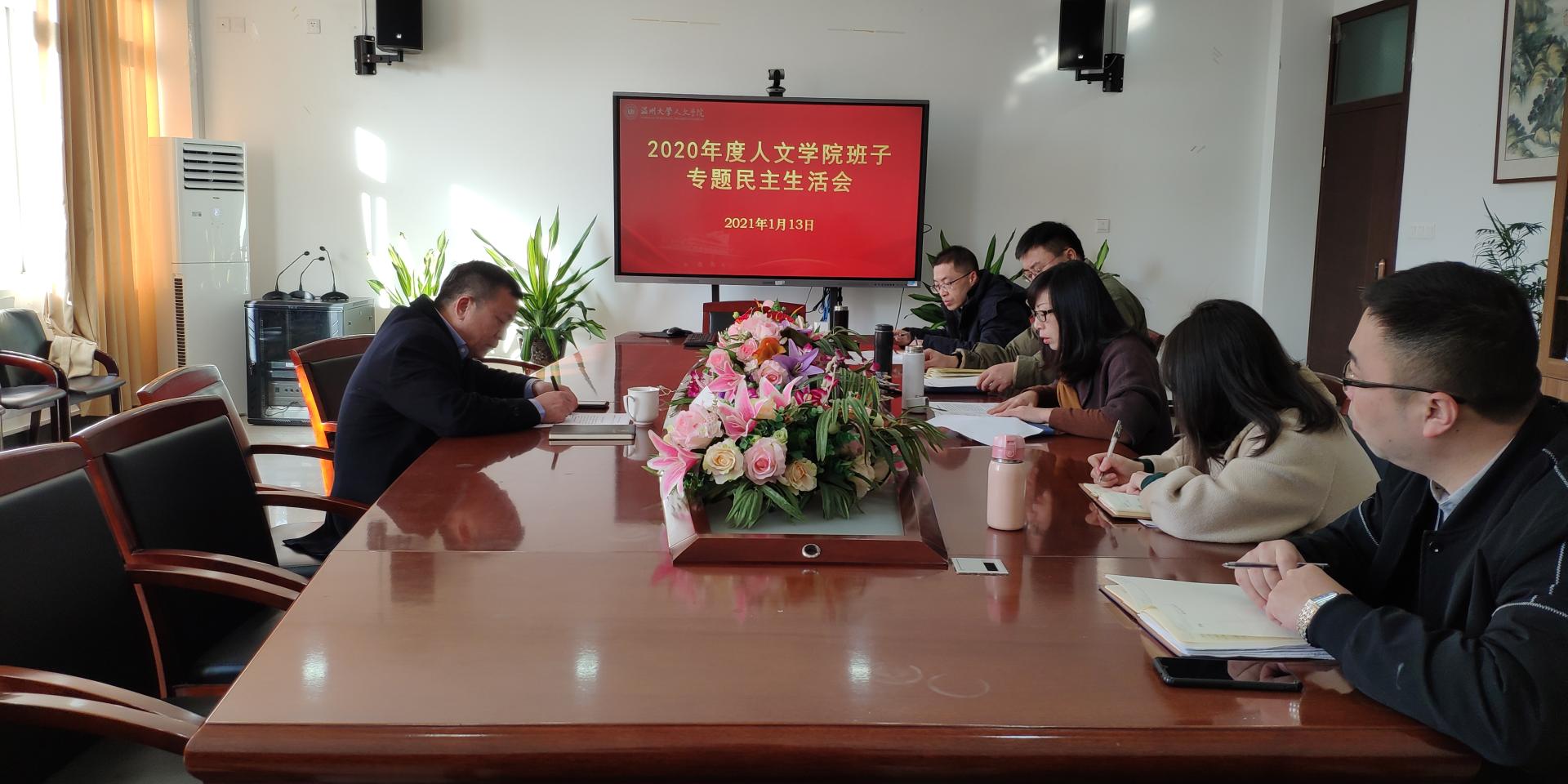 2021年1月13日上午,公司在人文楼213会议室召开了领导班子专题民主生活会。孙良好、吴静、郑春生、魏一参加会议,副经理陈源源、经理助理张真列席会议。公司党委书记谢树华同志参加并指导民主生活会。