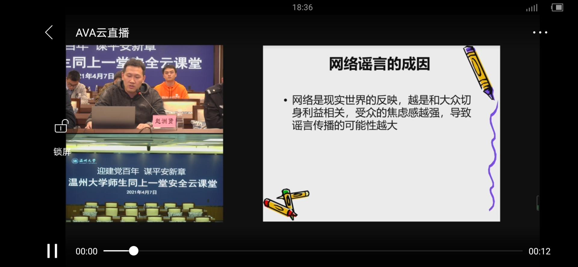 师生共上安全云课堂,老师的叙述娓娓道来,以周边发生的事例不断强调网络安全的重要性,使我们意识到网络诈骗的危害、网络谣言的可怖以及网络安全警钟长鸣。作为当代老员工,我们要时刻警惕网络诈骗,能够辨别网络陷阱,维护自身信息安全。提高网络修养人人有责,不信谣,不传谣,还网络一片清朗空间,牢记网络不是法外之地。