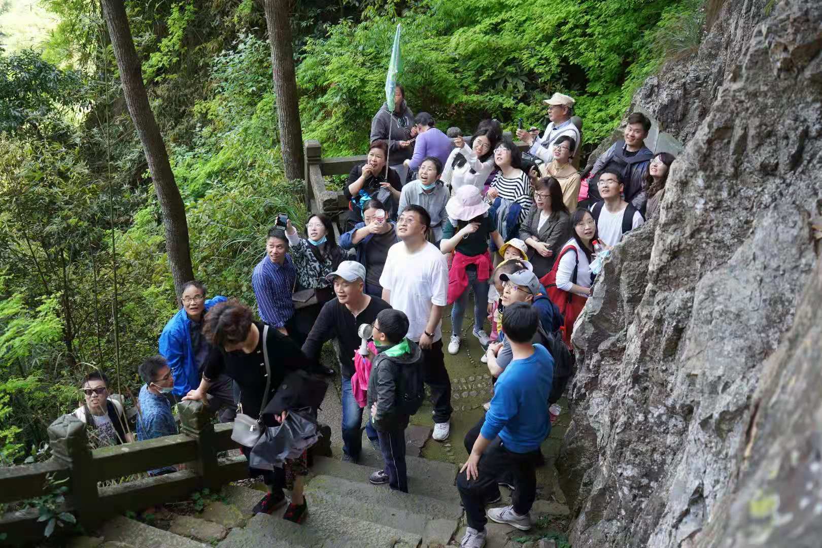 经过约2个小时的车程,大家抵达南雁荡山,经过竹排往返,在风光秀丽的山色里先后参观了金蝉望花、东南屏障、云关、仙姑洞、会文书院等景点。南雁荡山景色宜人,老师们纷纷感慨“春光无限好”。