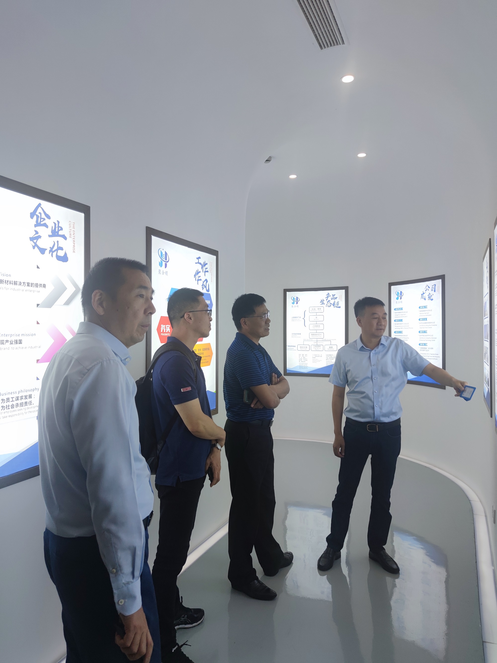为更好地凝聚员工、服务员工,增进员工与母校的情感,搭建员工与母校沟通的桥梁,实现公司和员工事业共赢发展,5月16日上午,公司党委副书记魏一、永利yl23411官网教授刘建国以及学工办辅导员申业磊一行赴员工傅昌宝创办的杭州聚合顺新材料股份有限公司走访。