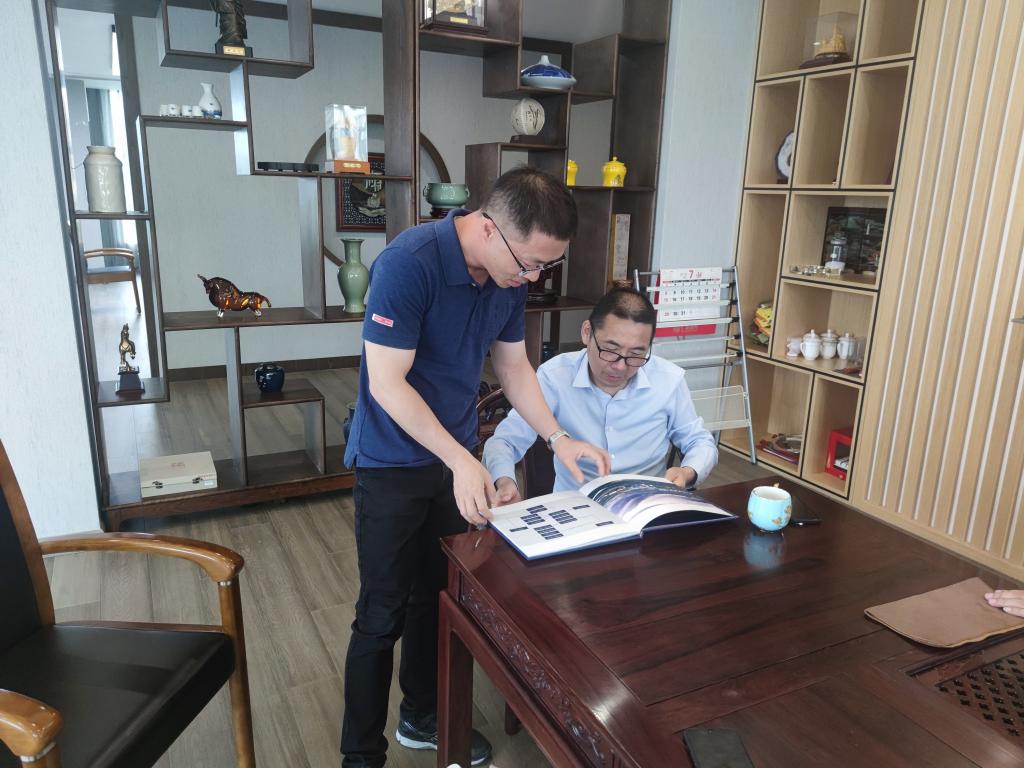 交流中,魏书记向傅昌宝真诚地表达了母校的问候和关怀,并赠送了定制的员工纪念册。魏书记表示,公司高度重视员工工作,公司的发展离不开广大员工的关心和支持,众多杰出的员工更是公司的宝贵财富和无价之宝。接下来,公司将全面深化推进员工工作,成立永利yl23411官网员工会为每一位员工做好服务,更好地促进员工和母校的沟通交流,实现员工和公司事业共赢发展。刘建国老师是傅昌宝的大学班主任,两人共同回忆了大学时光,虽过去三十多年,但大学的点点滴滴依然历历在目。刘老师对其现在的发展给予了充分的肯定,也对其以后的发展寄予了厚望,希望其能够不忘初心,砥砺前行,在自身发展的基础上不忘回馈母校,支持母校的发展。傅昌宝对公司老师一行的来访表示热烈的欢迎,感谢母校老师心系员工,对员工发展的关注。随后,他详细地介绍了关于我们、发展历程、主营业务以及发展愿景。