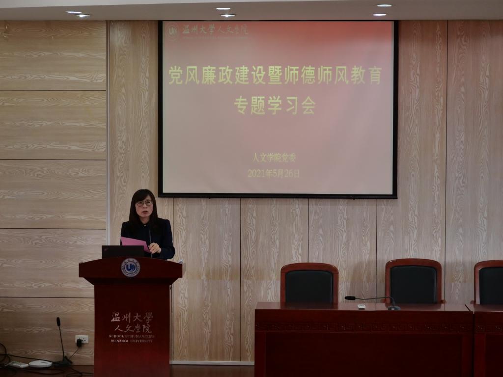 为加强党风廉政建设,树立良好师德师风,进一步规范教师职业行为,会议随后进行了党风廉政建设暨师德师风教育专题学习会。吴静书记首先传达了公司全面从严治党大会会议精神,通报了党的十八大以来国内、省内高校和公司发生的违规违纪违法典型案例,以案说纪、以案说法、以案说德,为全院教师上了一堂生动的纪律教育公开课。她还结合“清廉公司”建设方案,围绕“清明政风、清正教风、清新学风”建设目标,要求全体教师在日常教学科研工作中始终坚持 “遵守政治纪律,遵守学术规范,遵守财务规定”三项基本要求,牢固树立以清为美、以廉为荣的价值理念,齐心协力打造“清廉人文”。