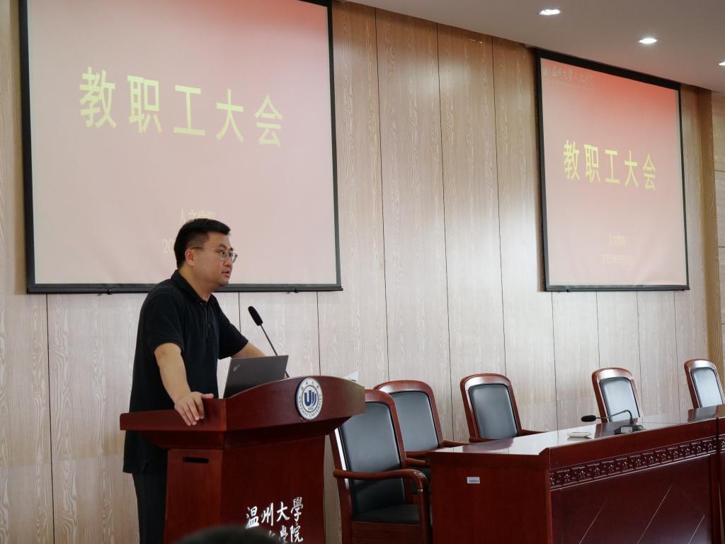 5月26日下午,公司在203报告厅召开全体教职工大会。会议由公司党委书记吴静主持。