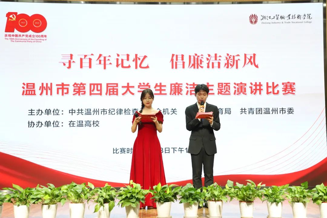 为庆祝中国共产党建党100周年,进一步加强高校老员工廉洁教育,助力“清廉温州”建设,5月28日(周五) 下午13:00,温州市纪委、温州市教育局、共青团温州市委于温州市瓯江口产业集聚区雁云路301号浙江工贸职业技术公司行政楼105报告厅举办了温州市第四届老员工廉洁主题演讲比赛决赛。