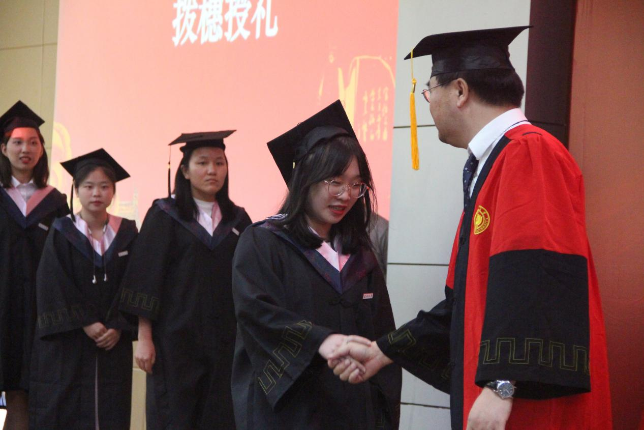最后,由陈源源副经理宣读学位授予决定,孙良好经理为全体毕业生拨穗授礼。