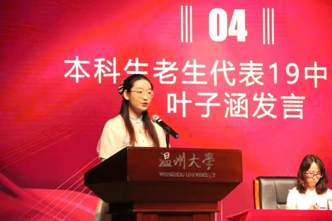 来自19级学科历史的韩旭同学和19级中本1班的叶子涵同学分别作为在校研究生、本科生代表依次上台发言,展现了他们对学术的热情与知识追求的过往。韩旭分享了自己的学习感悟,他认为要以兴趣为信仰,建议新生在学习内容专业化、时间个人化、选择方向自由化的情况下,确定自己的人生目标,规范自己;叶子涵认为学术固然重要,但也需要实践。只有通过不同的比赛和实践,才能发掘自己的潜能,充实自己的生活。随后,来自21级文艺学翁佳箐同学和21级广告邵敏同学分别作为研究生、本科生新生代表依次上台发言,他们将自己的分享娓娓道来,认为大学是积累的过程,提醒大家在追求真理的道路上,都要以崭新的面貌去奋斗。 “我们要为新生活展开美好的想象,与奋斗相拥,与平庸相逝。要在心中燃烧一把火,在心中留一盏灯,在大学期间沉淀自己。”