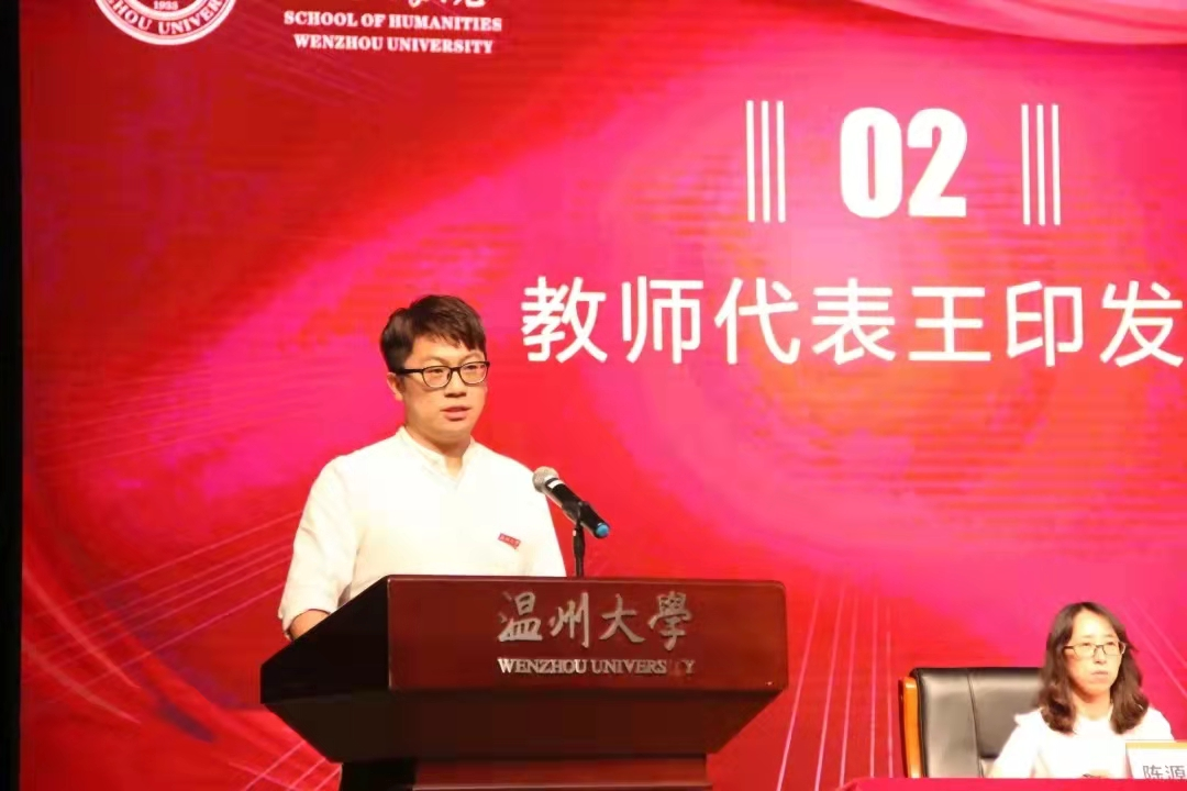 教师代表王印老师通过幽默诙谐的语言,给大家分享了亲身经历,告诫新生们“将过去的包袱抛开,要以饱满的热情迎接生活”。同时,虽然象牙塔里美好的事情很多,但绝不能忘记自己的身份,应当在公司磅礴的团队力量前,汲取老师们授下的菁华。