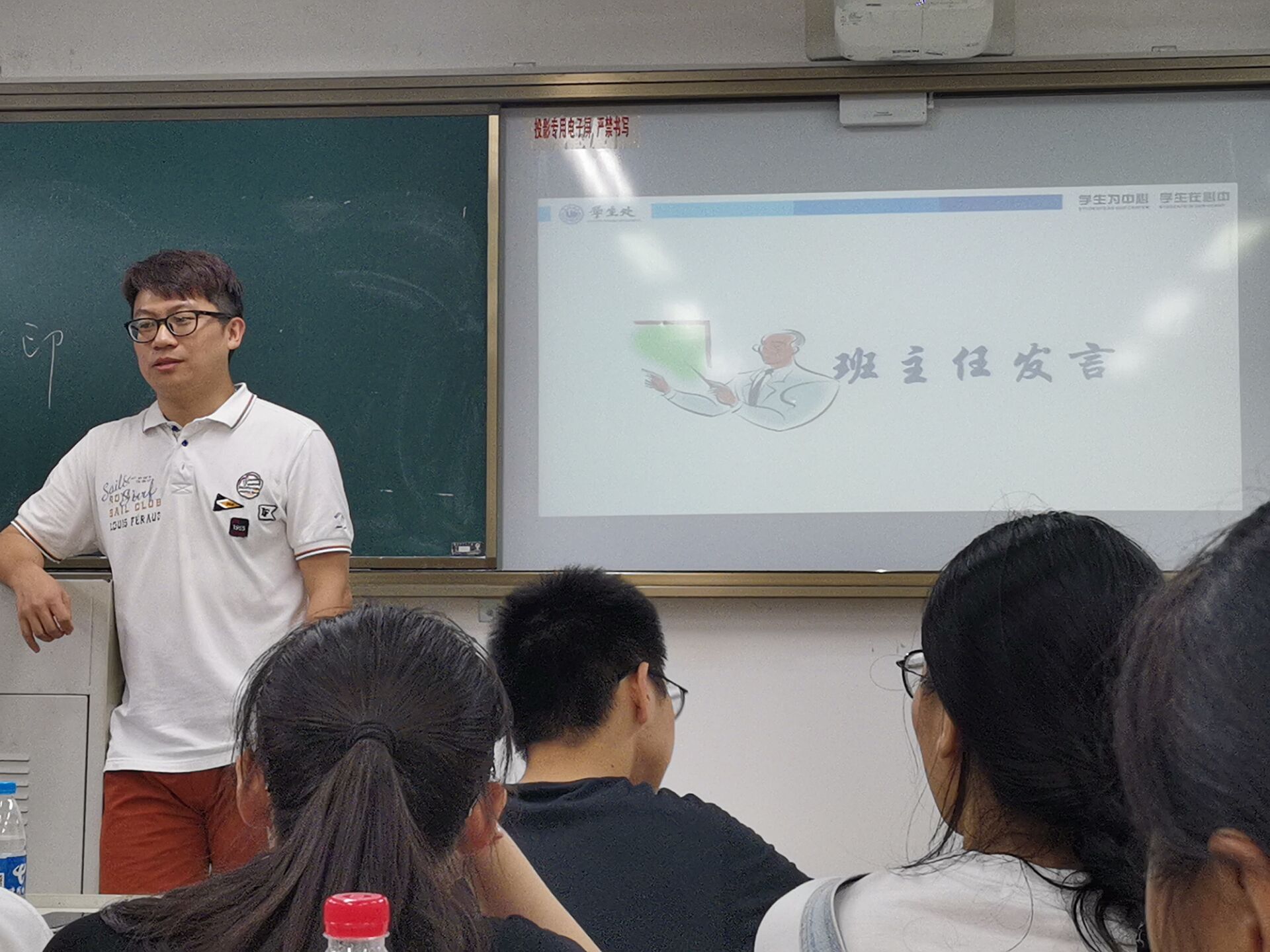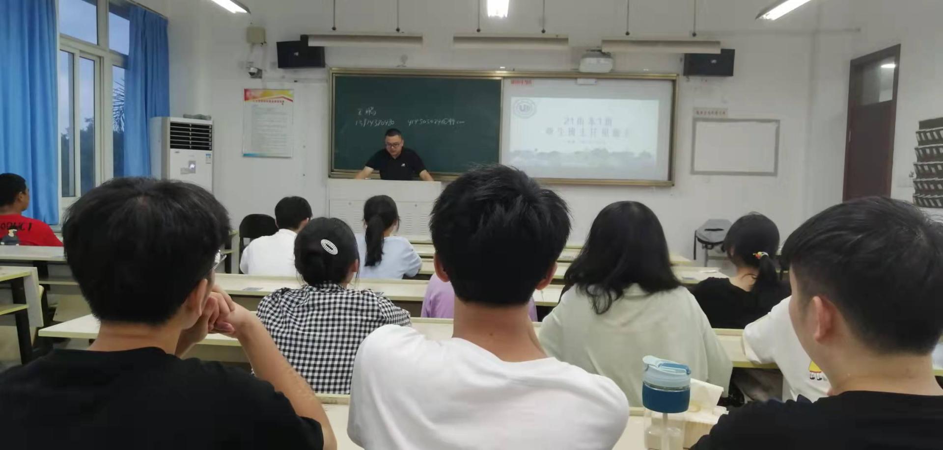 王鹏老师在人文楼303教室举行21历本1班第一次班会课。本次班会课进行了自我介绍、班委选举等环节,王鹏老师在班会上强调了安全问题,给同学们讲解了奖助学金、素质拓展等方面的制度和要求,同时还希望同学们可以放下思想上的包袱,明确未来目标。