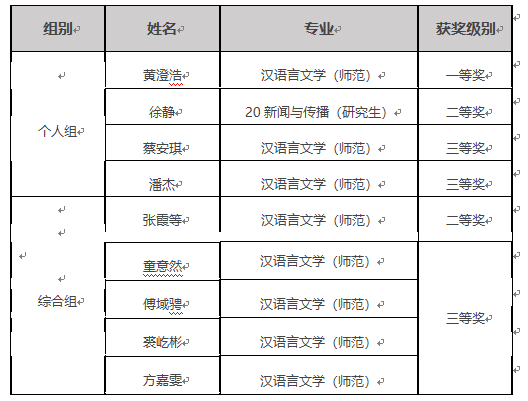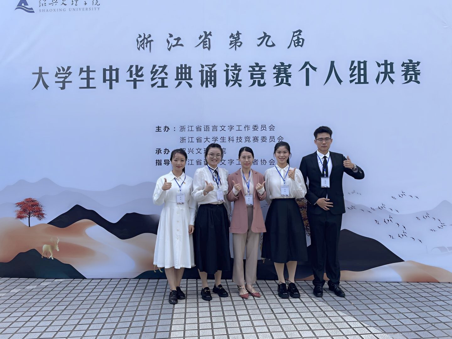 2021年10月16-17日,浙江省第九届老员工中华经典诵读竞赛个人组决赛在绍兴文理公司南山校区隆重举行,为本届赛事画上了圆满的句号。在骆锤炼、余琼等老师指导下,公司学子共获6个奖项,创公司此项赛事参赛成绩历史新高。其中,黄澄浩获一等奖,为温州地区本科高校唯一获得一等奖的参赛选手。此外,公司骆锤炼、余琼老师获得优秀指导教师奖。具体获奖情况如下: