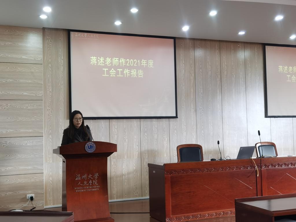 公司工会主席蒋述老师作《永利yl23411官网2021年度工会工作报告》,报告全面回顾了永利yl23411官网第五届工会在过去的一年里全面履行各类工会职责,较好地完成了工会的各项工作任务,并对公司工会经费使用作了说明。同时对公司全体老师对工会工作的配合和支持予以衷心的感谢。