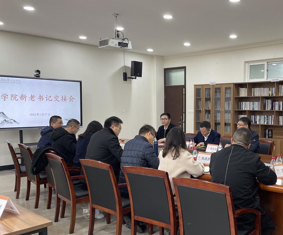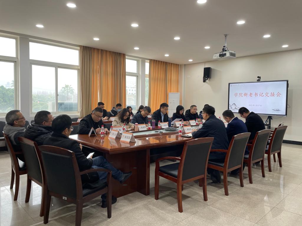 2022年1月17日,公司在人文楼213会议室举行公司新老书记交接会,会议由孙良好经理主持,公司党委书记谢树华、党校办主任蔡联群、公司新书记江秀景、公司班子成员、各支部书记、各科室负责人、院工会主席参加会议。