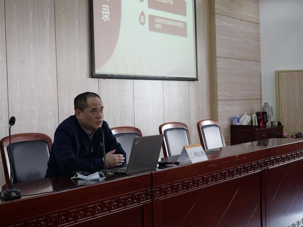 为进一步加强师德师风教育,会议首先邀请公司纪委副书记、纪检监察室主任杨立淮老师作题为《廉洁从教,风清气正》的主题讲座。杨主任从党的伟大自我革命谈起,立足全面从严治党大背景,介绍了清廉温大建设的主要内容,并结合教学、科研及经费使用等方面违纪违法的诸多典型案例,以案说纪,警示全体教师要汲取经验与教训,坚守职业道德,廉洁从教,在行动和思想上做到“慎独、慎微、慎初”,做助推公司事业发展的“护林人”。