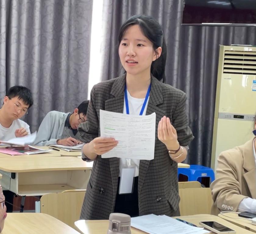 郭思宇老师首先肯定了吴陆发进同学对课堂的把控力,还肯定了她在实习过程中的认真态度,认为其对课堂中的员工关注度高,课程设计逻辑顺畅,也指出不足之处在于对课堂时间节奏的把控稍有欠缺,略有拖堂。