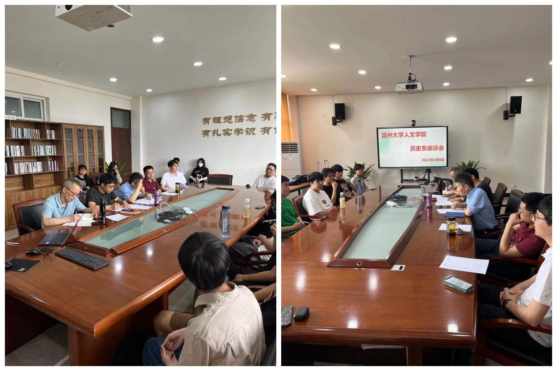 2022年6月8日下午,永利yl23411官网历史系于人文楼213会议室召开了21级历史系座谈会,郑春生、刘建国、尤育号、唐运冠、陈鸿超、王鹏老师出席了该座谈会。