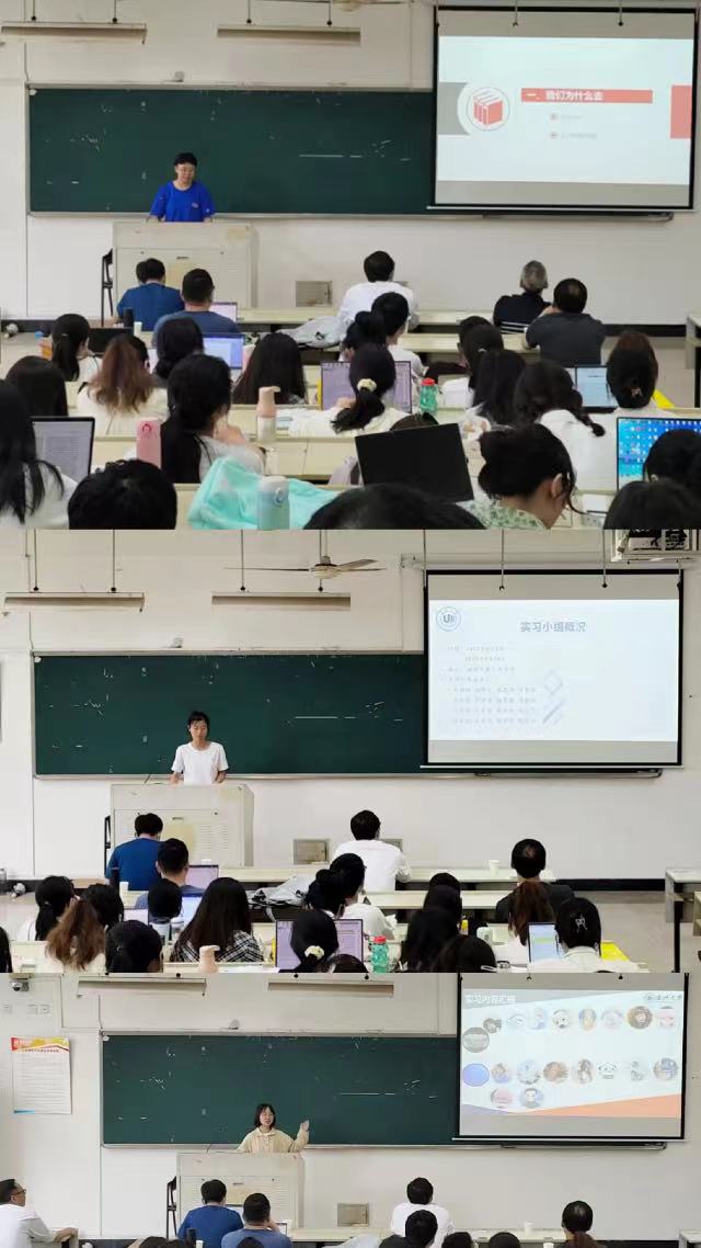 接下来,平阳县鳌江中学实习小组代表李思羽,北大新世纪温州附属公司实习小组代表罗大云,温州市第十九中学实习小组代表周利欣,三位同学从教育实习工作、日常生活、心得分享等方面给我们介绍了各个实习点的情况,展示了19历本班全体同学对待实习工作认真负责的态度和踏实做事的行为。