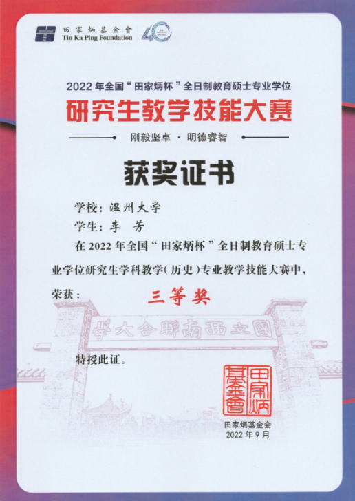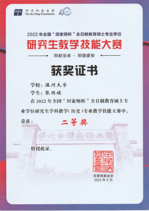 为了全面展示教育硕士专业学位研究生的教学能力和培养院校的培养成果,交流培养经验、提高培养质量,2022 年全国“田家炳杯”全日制教育硕士专业学位研究生学科教学(历史)专业教学技能大赛于2022年4月至6月如期举行。