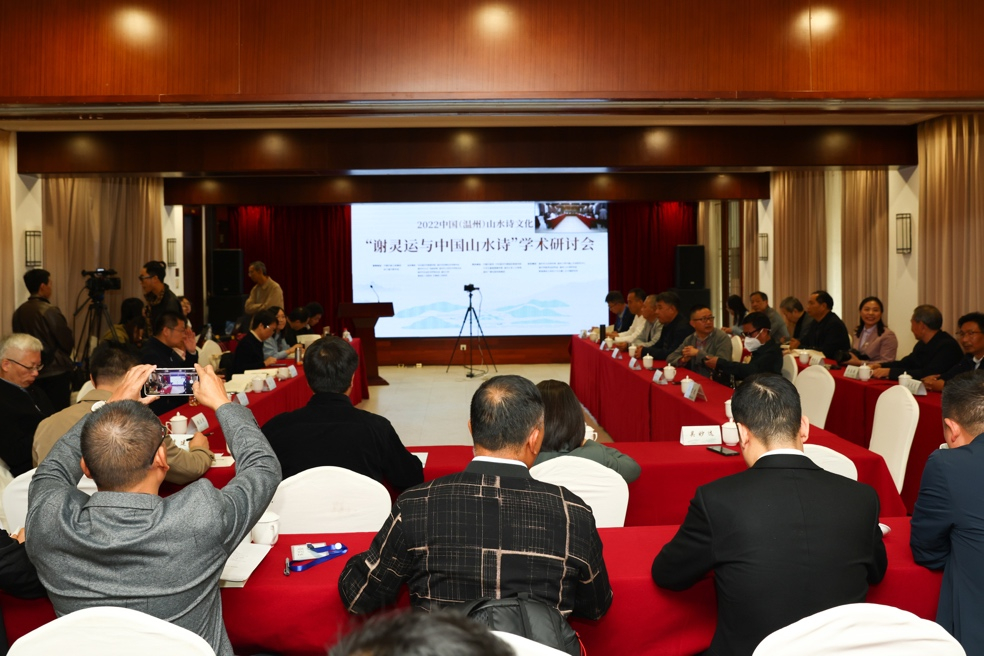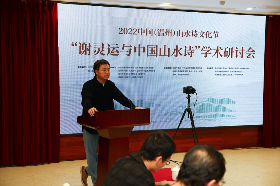 2022年11月5日下午,“谢灵运与中国山水诗”学术研讨会在永嘉县举行。此次学术研讨会是“2022中国(温州)山水诗文化节”的重要组成部分,来自国内外的30余位专家学者受邀与会。研讨会现场,专家、学者们通过线上线下结合的方式,共同研讨谢灵运的诗歌成就,探讨中国山水诗丰富的内涵,助力瓯江山水诗路建设。