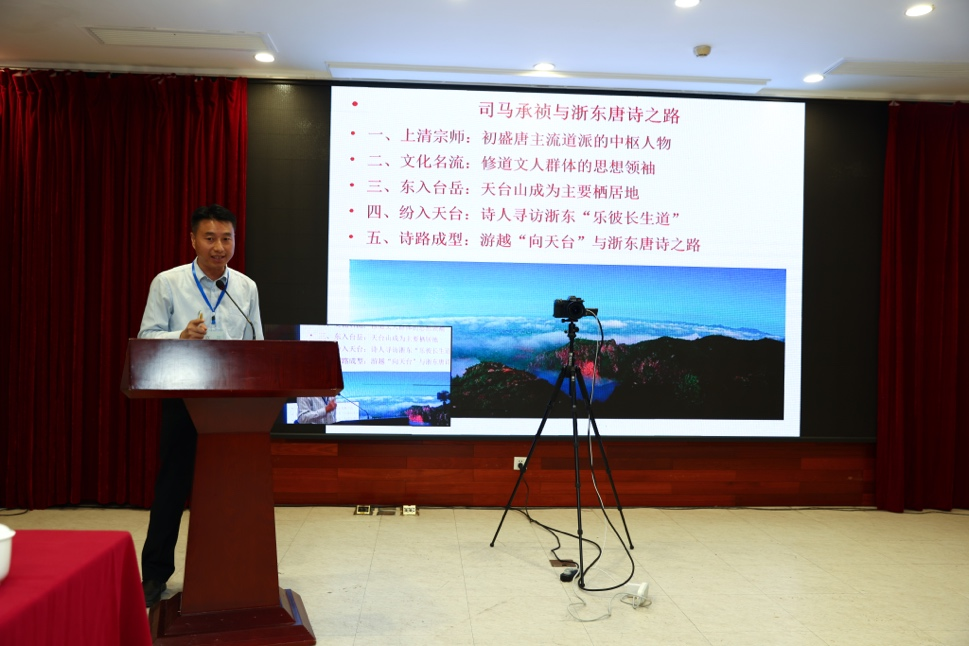 在上半场的发言环节中,华东师范大学方笑一教授对谢灵运在永嘉所作的两首山水诗《登江中孤屿》《石室山》进行评析。兴义民族师范公司马黎丽教授对谢灵运山水诗的时空、行迹书写与景物刻画进行探析。河北大学姜剑云教授从谢灵运任永嘉太守时期的作品文本入手,论证了“永嘉太守谢灵运乃可贵良吏”的观点。台州公司胡正武教授探讨谢灵运在会稽、永嘉和临海三地经行的遗踪,考证谢灵运《登临海峤》中涉及的地理位置。福建师范大学蔡彦峰教授则把刘勰“庄老告退,而山水方滋”的理解引向了一个新的空间。