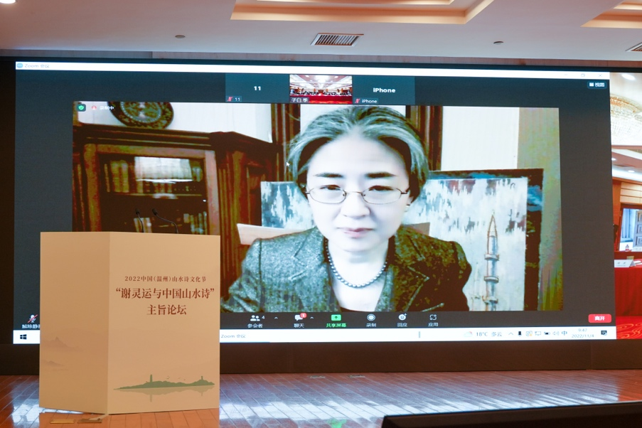美国哈佛大学教授田晓菲线上阐述了《历史与家国的解脱:谢灵运山水诗的意义》。她将谢灵运的山水写作模式与前人的写作模式进行对比,发现谢灵运新型的山水写作更多地关注山水内在的精神之美,而不再是借山水以抒发怀古之情,谢灵运的山水不是社会历史的投影,相反却为诗人提供了逃离社会历史的一种方式。最后,田晓菲总结:山水描写的兴起“既是一个内向的、也是一个外向的运动。”外向,指从人本位走向更广阔的自然山水世界;内向,指从山水的外在附着物(古人古事古迹)转向对山水自身境界的关注。