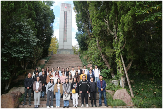 当年忠贞为国酬,何曾怕断头?青松挺得笔直,纪念碑静静矗立,高高耸入云天。红十三军的军部就设在这里。当时的中央军委按照中央巡视员金贯真的建议,于1930年派胡公冕回乡组织红军。于是,由浙南红军游击队统一改编的中国工农红军第十三军正式成立了!20历本的同学们在纪念馆观摩陈列物,仿佛穿越时空,与战士们对话。抬枪数杆,马灯一盏,前路漫漫,毅然决然。纵使装备落后,衣衫褴褛,但仍凭智慧和热血与敌周旋,有力地配合了全国的土地革命战争,并为后来红军挺进师的活动和浙南游击根据地的建立以及党组织的进一步发展,奠定了坚实基础。而几位领导人以至所有将士,皆磊落奇伟,一心一德,贯彻始终。远山间落下稀疏淡影,他们伟岸的身躯刻在墙上,画在绢上,投在大地上,印在20历本同学的心灵上。