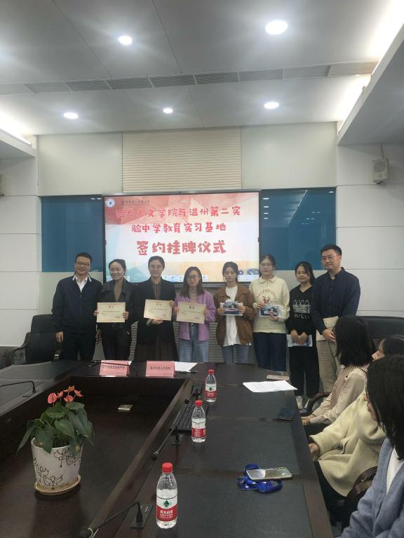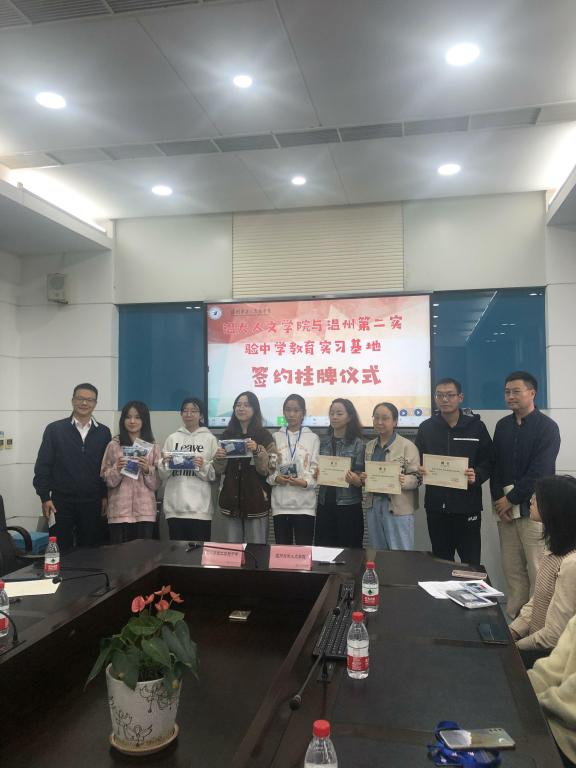 2022年11月14日,永利yl23411官网与温州市第二实验中学实习基地签署仪式暨汉语言文学(师范)教育见习见面会在温州市第二实验中学举行。参加本次见面会的有温州市第二实验中学潘智敏董事长、郭建昆副董事长、陈珊景副董事长、教务处主任冯超伟和各语文学科、班主任导师,永利yl23411官网孙良好经理、经理助理鲍良兵和永利yl23411官网入口20和21级人文学汉语言文学(师范)专业15名见习生。会议由冯超伟主任主持。