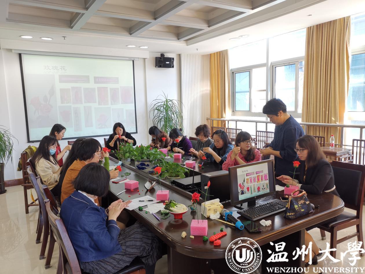 女教师们兴致勃勃,现场气氛严肃认真、生动活泼,和蔼可亲的郑女士不辞辛劳,逐一为老师们示范制作方法或直接帮忙修改。在郑女士的点拨下,大家亲手制作出了一支支娇艳欲滴的米塑玫瑰花,手捧“鲜花”走在校园里的女教师们理所当然地成了关注的焦点。