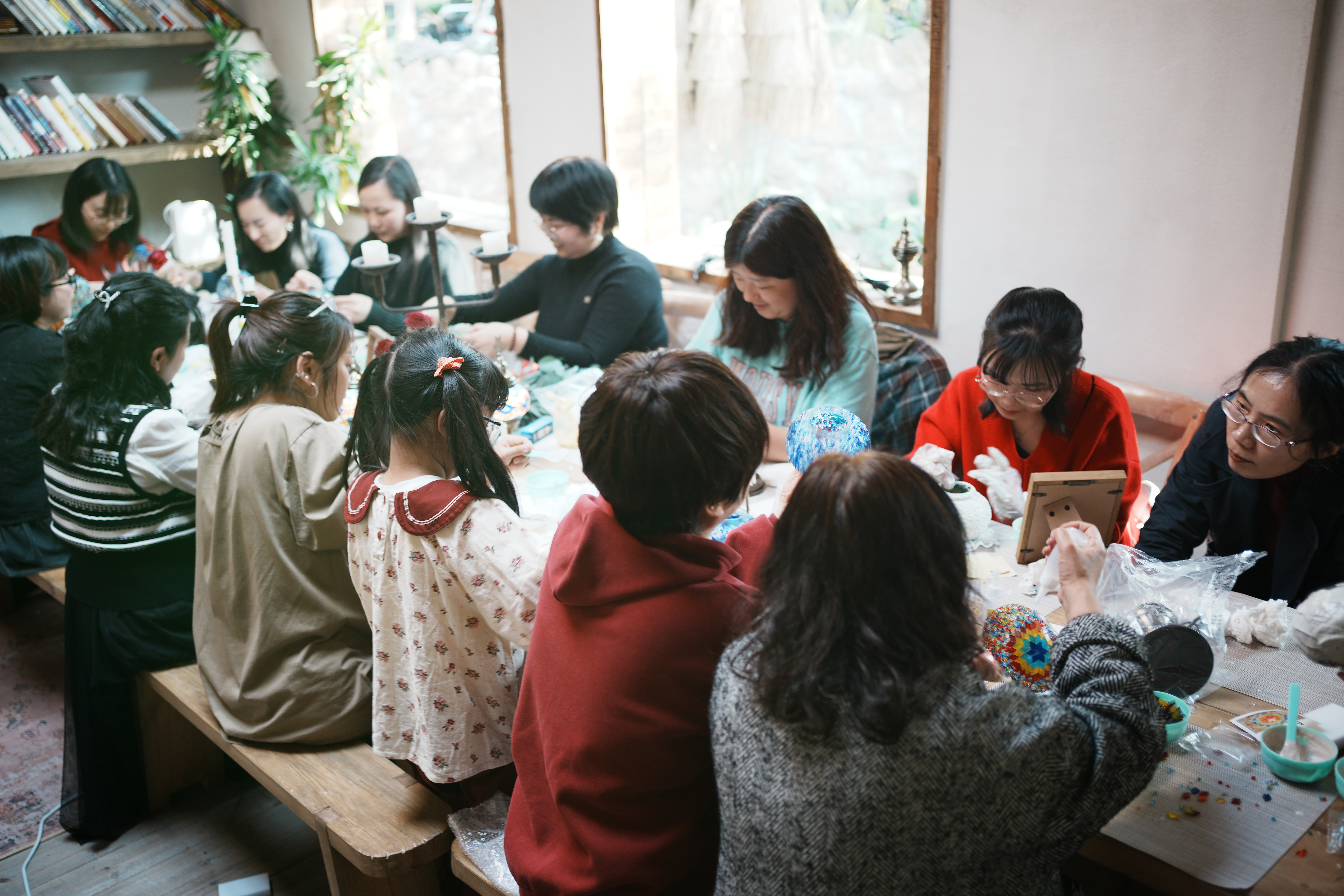 在这个美丽的季节里,女教师们沐浴着春日温暖的阳光,一边倾心品茗,一边精心手作。一颗颗晶莹剔透的马赛克珠子经过老师们的巧手,化为灯罩上的点点星光,投射出阳光律动的影子。土耳其马赛克手工灯的制作,既为老师们带来手力与心力的双重挑战,又时时诉说着来自节日的美好期待。亮灯的刹那,喜悦纷至沓来,惊喜无处不在。