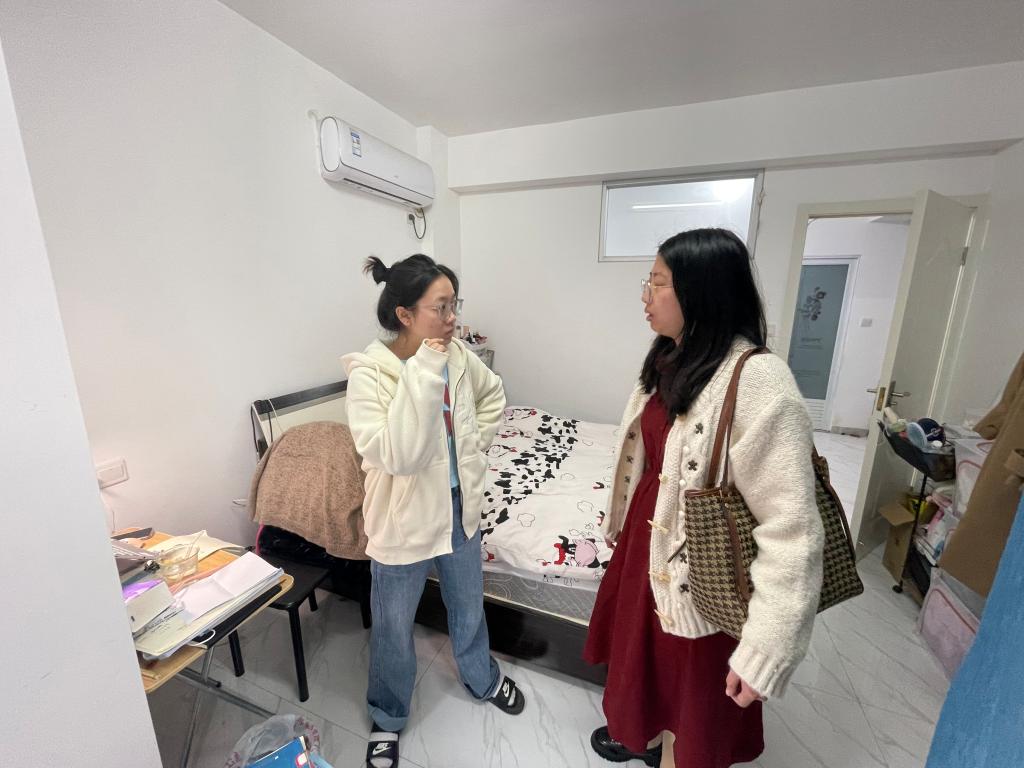 近日,为进一步了解校外住宿同学的住宿环境以及新学期学习生活情况,确保校外住宿同学的住宿安全,公司党委副书记魏一带领公司全体辅导员走访了校外住宿员工,为同学们送去关心和问候。