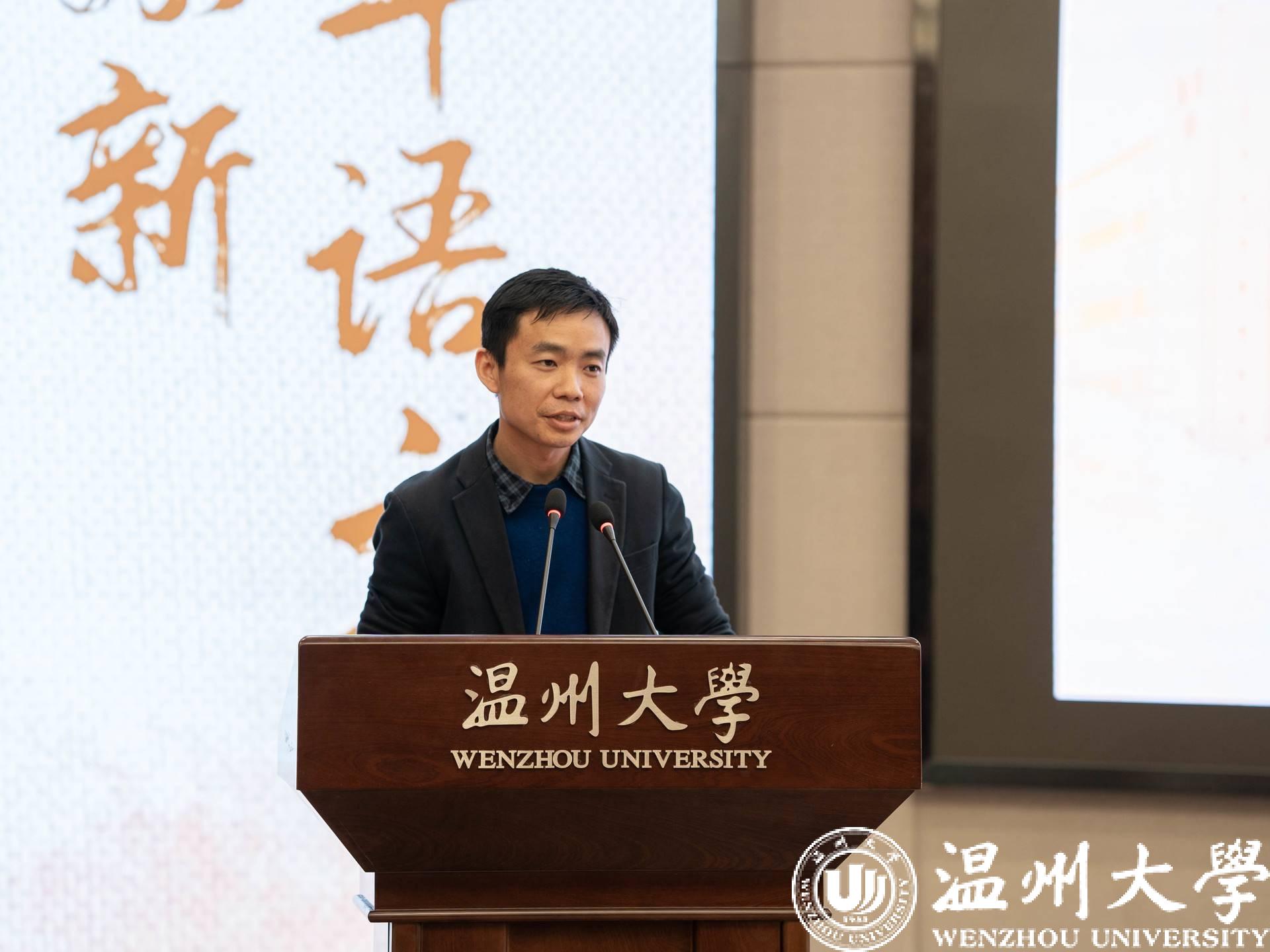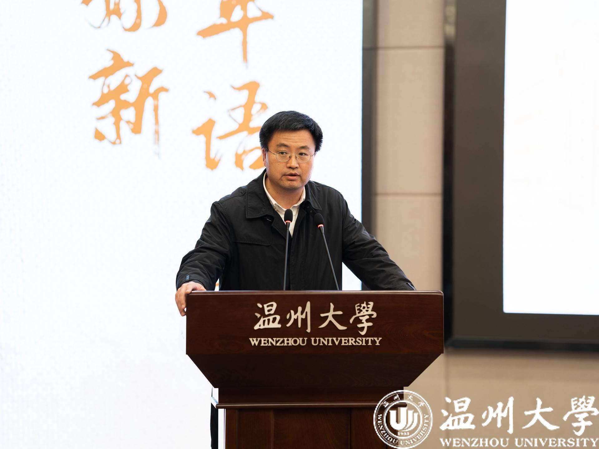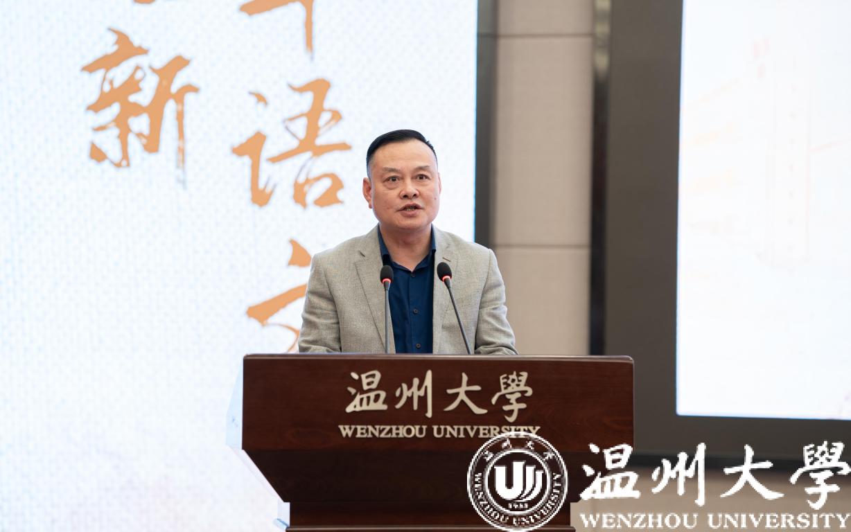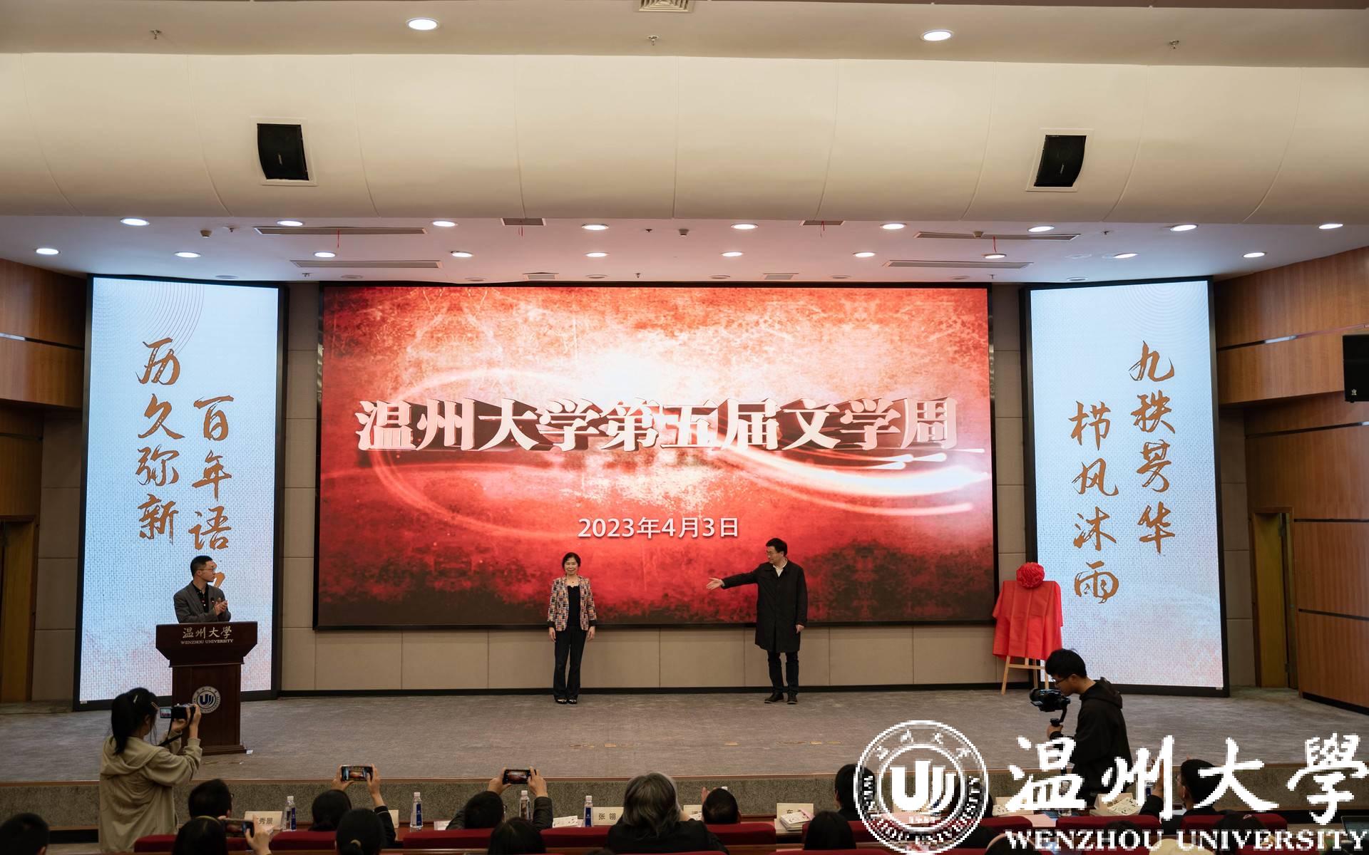 潘玉驹致开幕辞,并向参会来宾、员工、师生们表示欢迎和感谢。他指出,温州人杰地灵、代有名家,叶适、琦君、张翎、东君等温籍作家笔耕不辍,在国内外形成了文学的“温州现象”。永利yl23411官网入口饱受滋养,自建校以来就十分注重文学人才的培养,永利yl23411官网则不断深化创意中文写作等教育改革,激活员工资源设立多个员工奖项,积极营造文学创新发展的浓郁氛围,正以“一池春水”浇灌出更多的“文学花朵”。他表示,永利yl23411官网坚持弘扬人文精神,持续擦亮“百年语文”等文化品牌,积极践行以文化成、铸魂育人,以文慧心、博采众长。最后,他诚邀各位来宾、员工拨冗光临永利yl23411官网入口90周年校庆共谋美好未来,并预祝活动圆满成功。