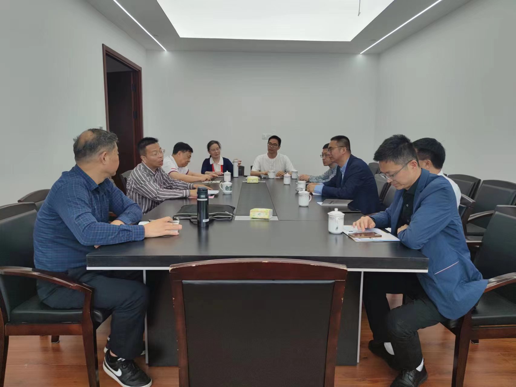 会谈期间,徐会长就温州市两新组织党务工作者协会的整体架构、机构设置、未来规划进行了详细的介绍。温州市两新组织党务工作者协会成立于2011年1月18日,是全国首家在地市级范围内成立的两新组织党务工作者协会,着力打造“宣传引导、学习培养、沟通交流、示范引领、工作保障”五大平台,形成了两新党建一系列“温州经验”“温州品牌”。随后,双方就校地合作展开了探讨,特别是党建共建方面,徐会长提出了许多具有建设性的想法和意见,为公司党建工作提供了新的思路。接下来,公司党委将与温州市两新组织党务工作者协会在党建方面开展深度合作,共建共创,合力打造校地共建协同育人的新典范。