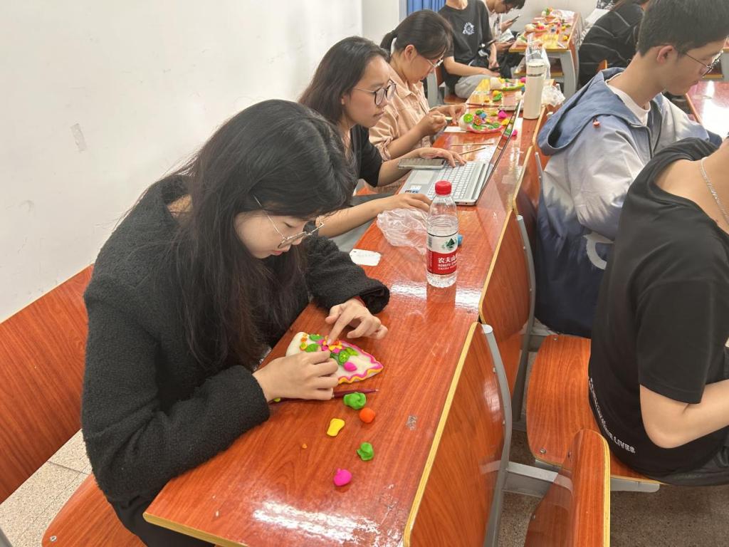 陈老师先向大家介绍温州米塑的由来以及发展历程,之后向大家展示她做的“寿桃”,米塑寿桃做得栩栩如生,上面还点缀着色彩丰富的花鸟鱼虫等,还有一组是“梅兰竹菊”系列的寿桃,陈老师向大家解释说:“不同的场合会用到不同的寿桃,它们代表的含义也是不一样的”。之后陈老师分发给大家一些不同颜色的米塑原料,鼓励同学们自己动手做一个“金榜题名”寿桃,在老师的讲解和指点下,同学们耐心细致地揉捏着手中的米塑,渐渐地,一个个生动的寿桃便出现在大家手中。