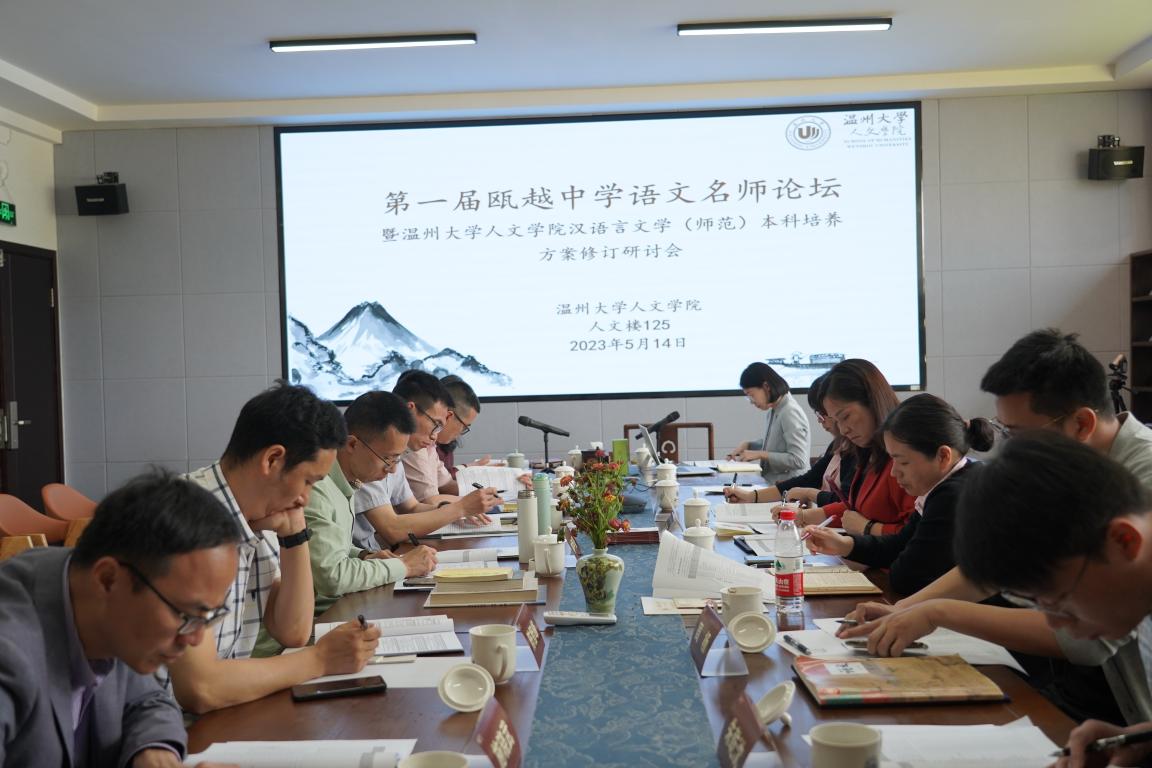 2023年5月14日上午,永利yl23411官网与温州市公司产品研究院联合举办的第一届瓯越中学语文名师论坛暨永利yl23411官网汉语言文学(师范)本科、语文专硕培养方案修订研讨会在人文楼203会议室成功召开,会议议题为“面向未来的教师能力培养”,温州市中学语文教学教研员、名董事长和名师等23位专家共论中学语文教师核心能力的培养。