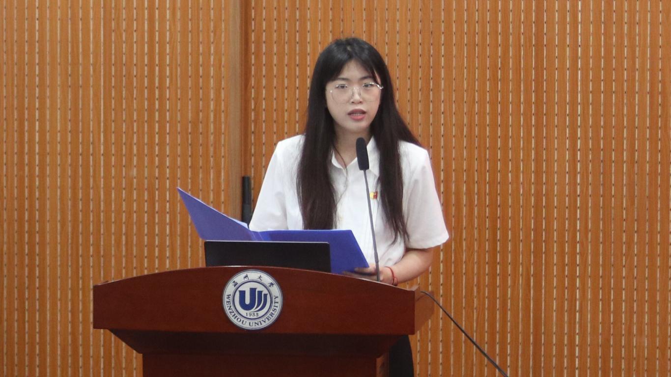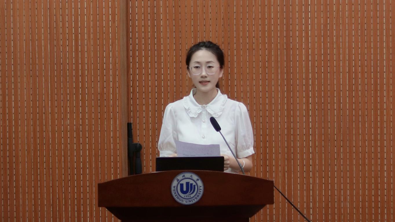 最后,由新任党服中心主任21汉语言文学(师范)1班的章可怡发言,她从优化部门设置、加强党建品牌建设、强化内部管理等方面阐述党服中心接下来的工作方向,切实履行党服的职能。