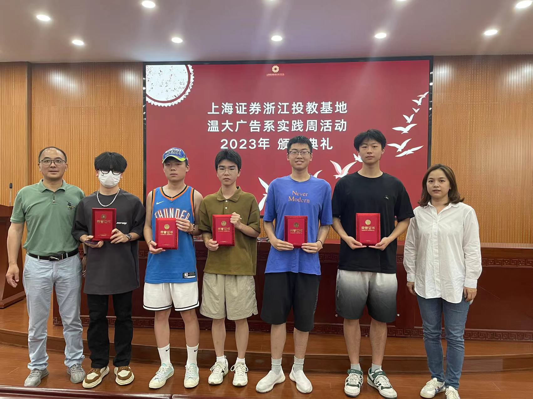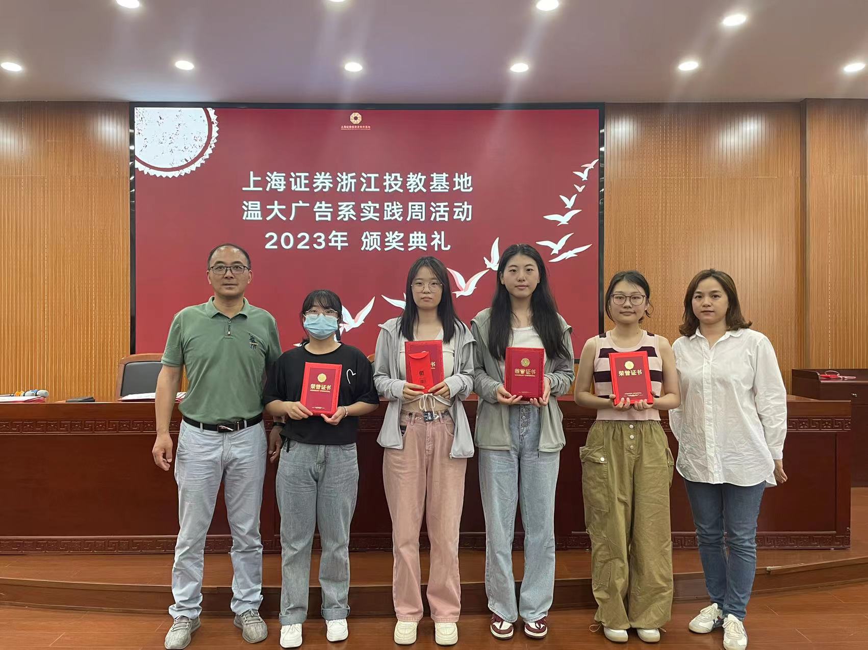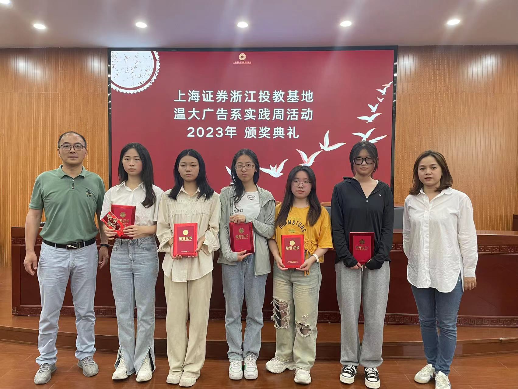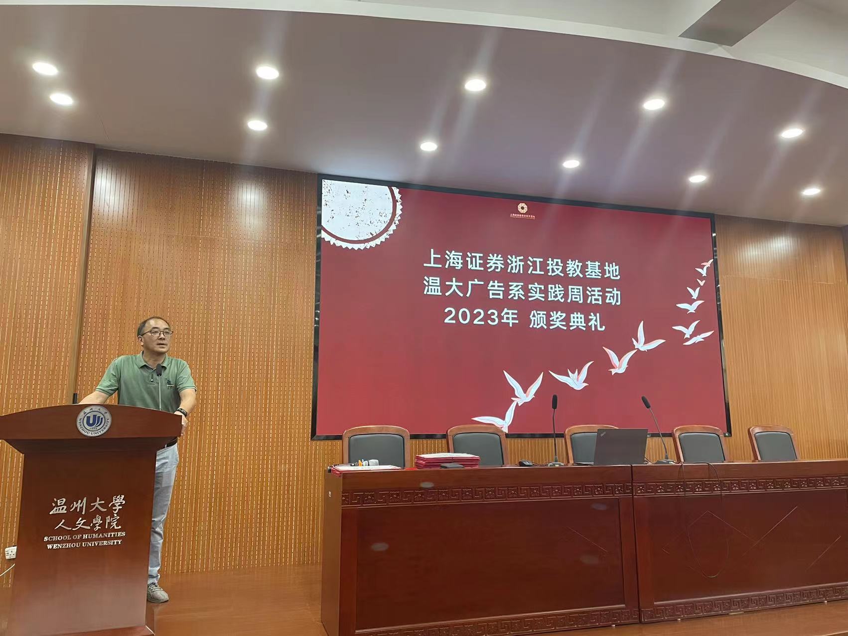 2023年6月2日,永利yl23411官网广告系与公司实践合作基地——上海证券浙江投教基地的企业方代表一同于人文楼报告厅举行上海证券投教基地温大广告系实践周活动颁奖典礼,以此表彰在本年度实践项目中创作出优秀投教作品的同学。